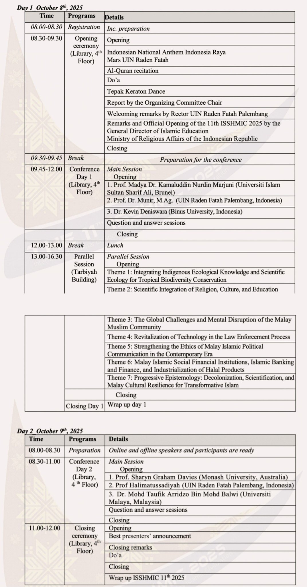 - Organized by: Universitas Islam Negeri Raden Fatah (UIN) Palembang, Indonesia 🗓️