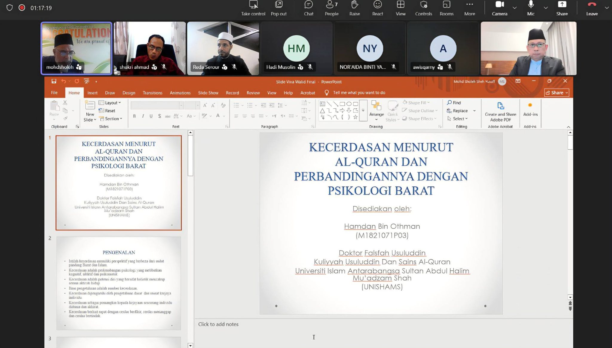 PH.D. VIVA VOCE IN USUL AL-DIN